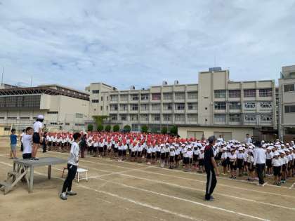 運動会の全体練習で開会式と応援団の練習を行いました。運動会の雰囲気が高まってきています。