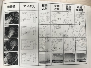 気象予報士になり、雲の画像を見ながら天気を予想する活動などを行いました。