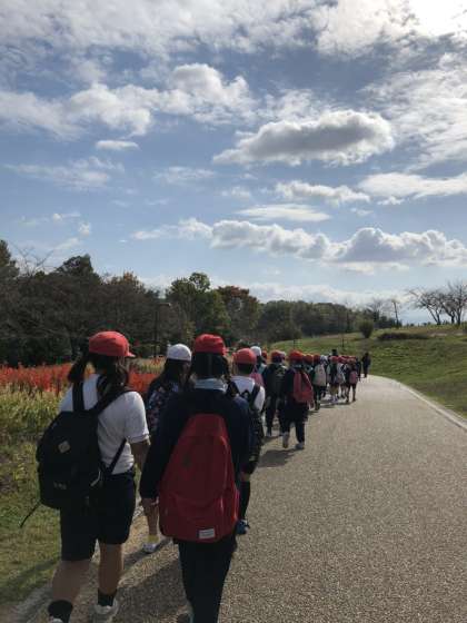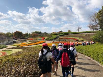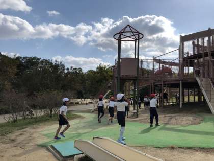 遊具で遊び、その後お弁当を食べました。お互いに声をかけあい、仲良く楽しく昼食を食べました。食後には、目の前に広がる原っぱで元気いっぱい運動しました!