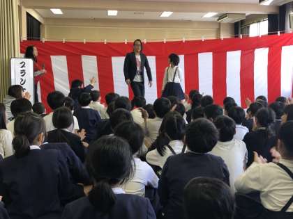 今週はコミュニケーションのワークショップでお笑い芸人のブランケットさんが出前授業に来てくれました!実際にネタを見たり、どちらがボケでどちらがツッコミかを考えたりしました。言葉を使ったやりとりから生まれる楽しい笑いについて学びました。実際に四年生の子たちも何名かネタ合わせをしてブランケットの2人と漫才をしました!子どもたちはとても楽しく友達の発表を聞いていました!またお家でもお話を聞いてみて下さい!