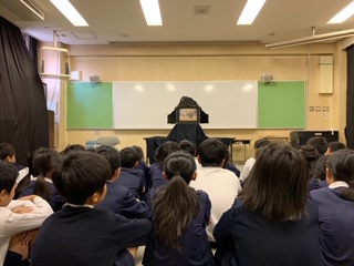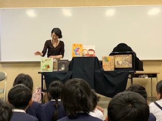 今日は「おはなしたからばこ」があり、平野図書館から紙芝居や絵本などを読み聞かせに来て下さいました。子どもたちは興味津々でお話を聞き、「犬の目」では面白おかしく笑い、「もっかい!」では一緒になって声を出しました!終わりには各クラスにもおすすめの本が紹介されて、教室に戻ってからも続きが気になって本を読む子どもたちの姿もたくさん見られました!