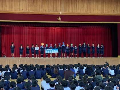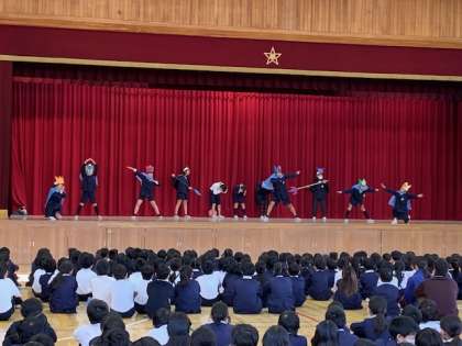 今日は朝会時、健康委員会の発表がありました。担当の児童が劇をしたり、手洗いの歌を歌ったりしてくれました。