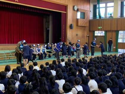 見守り隊のみなさんへのお礼の会がありました。手紙を読んだり、校歌を歌ったりして感謝の気持ちを伝えました。