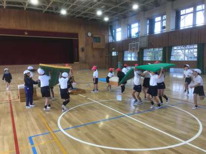 2年生は、体育館でマットや跳び箱を使って、体を動かしています!