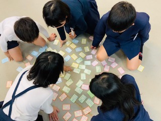 四年生では、来週の百人一首大会に向けてクラスで練習をしています。はじめはなかなか札が取れなくて悔しい思いをしていた子も少しずつ覚えて取れるようになってきました!班で協力しての試合をする中で、友達が札取れたときに一緒になって喜ぶ姿も見られました。また、お家でもお話を聞いてみてください!