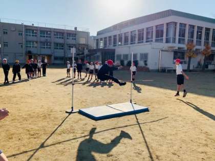 運動場での体育の学習では、走り高跳びが始まりました!子ども達は前回のハードルと違う跳び方に、はじめ戸惑う姿も見られました。どうすればスムーズに飛ぶことができるのかを考えたり、綺麗なフォームを意識して跳んだりすることでどんどん自信をもって跳べる子が増えてきました!
