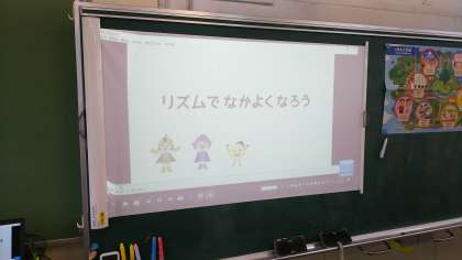 リズムに合わせて、手拍子をしたり、一番最初の歌「友だち」を鑑賞したりしました。リズムに合わせて、手拍子を打つ活動では、何人かの子どもに見本をしてもらいました。