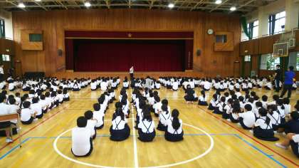 今週より暑さ・感染症対策を兼ねて、3年生は火曜日に講堂で朝会をしています。