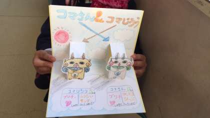 4年1組で研究授業が行われている間、おとなりの4年2組では子どもたちが飛び出す絵カードを作っていました!