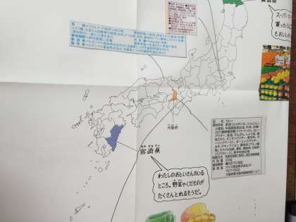家にあった様々な製品の品質表示を調べ、それぞれの生産地を白地図に貼り付けます!