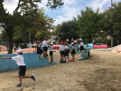 1年生は杭全公園へ、こうへんたんけんに行きました!