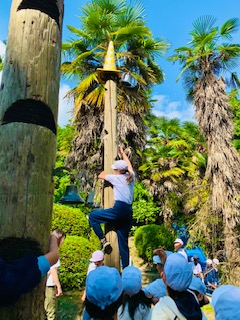 今週は5年生が始まって以来、初めての遠足で城山オレンヂ園に行ってきました。オレンヂ園に着くために、班で汐ノ宮駅から軽登山をして坂道や山道を登りました。着いてからはミカン狩りをして、昼食を取った後はアスレチックや冒険の森などそれぞれの場所で楽しむ姿がたくさん見られました。また、帰りの電車でもマナーを守り、静かに過ごす姿に感心しました。また、お家でもお話を聞いてあげてください!