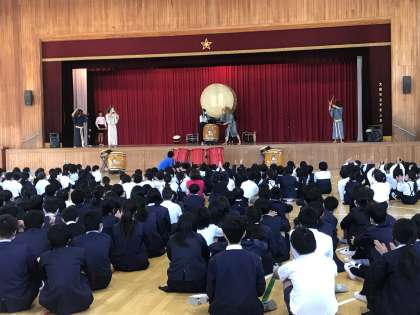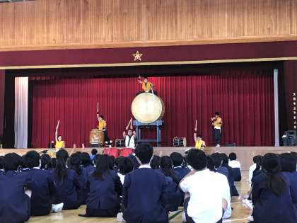 1年生は、芸術鑑賞会で「和太鼓 飛龍」さんの和太鼓演奏を聴きました!