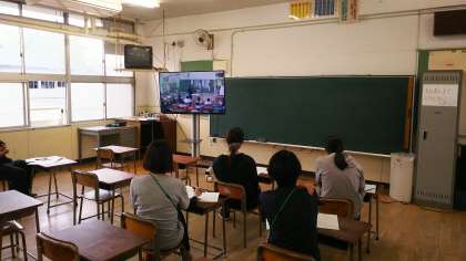 教室が密にならないように、リモートで隣の教室に授業の様子を映すこともしています。