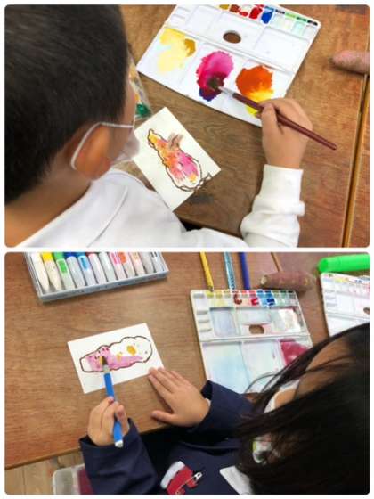 形や色を観察し、えのぐで