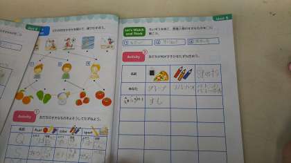 「What 〇〇 do you like?」「I like ○○!」教室の中に英語が飛び交っていました。はじめは戸惑っていた子もだんだん積極的に話せるようになっていきました。