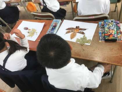 1年生は、久宝寺緑地や平野公園で見つけてきたどんぐりやきれいな落ち葉で、作品作りをしました!