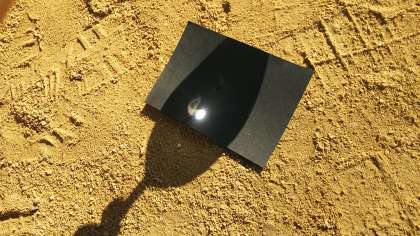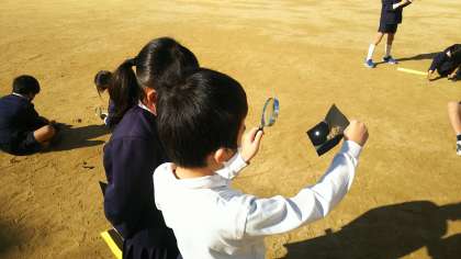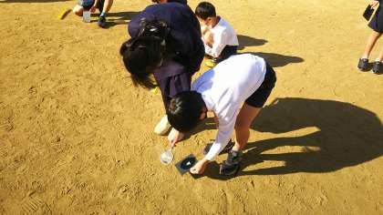 上手に日光を集めると紙から煙が上がりはじめ、紙が黒く焦げました。その様子に子どもたちは驚いていました。