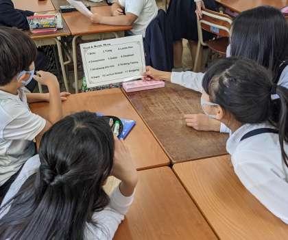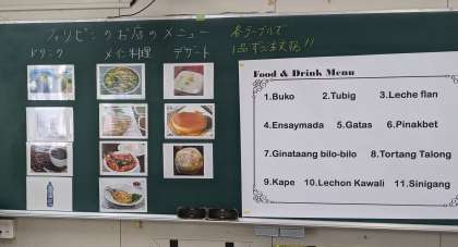 フィリピンのタガログ語で書かれたメニューから欲しい食べ物を頼む活動をしました。