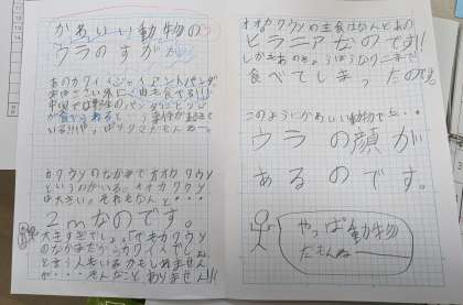4年生のある子は、帰り道にカゲロウが脱皮しているところを見つけ、その様子を写真とともにノートにまとめてきました。