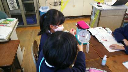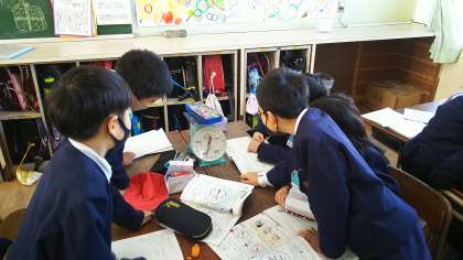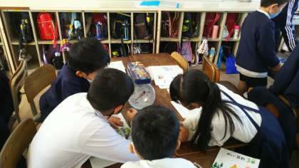 友だちの筆箱の重さと比べて、重いのか、軽いのかがわかり、楽しんでいました。
