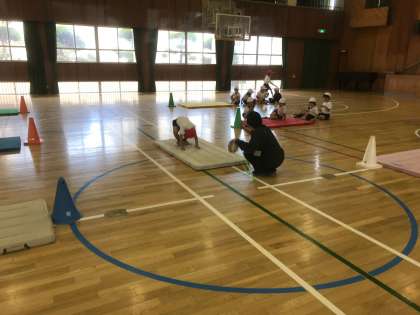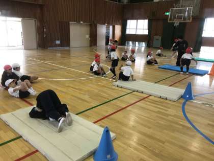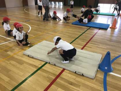 1年生は、マット遊びに取り組んでいます!