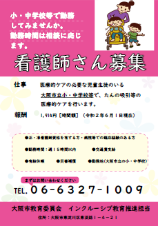 「学校で働く看護師さん募集」 教育委員会からのお知らせ