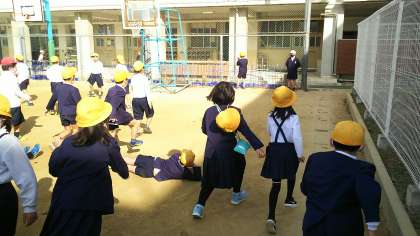 20分休憩にクラスみんなで「だるまさんがころんだ」をしていました。