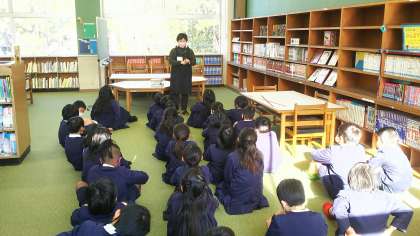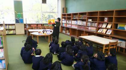 図書館補助員の先生に、改めて図書館の使い方を教えてもらったり、絵本の読み聞かせをしてもらったりしました。