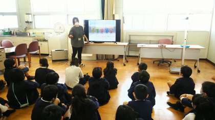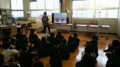 はじめに養護教諭の道券先生から、うがい・手洗い・マスクの話を聞きました。なぜその3つのことがウイルスから身を守ることにつながるのかということをスライドを見ながら聞くことで、しっかりとわかったのではないでしょうか。