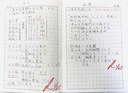 今回の自主学習では、社会科で工業の生産額で大工場と中小工場が占める割合ついて調べてくる子がいたり、動物の寿命についてまとめてくる子がいました。また、ITを使った工夫の仕方や産業でみられるITについて調べてまとめてくる子もいました!!