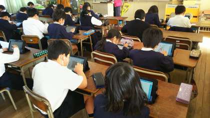 他の子の字や絵を黒板のスクリーンで見ることができたので、見られていると思うとみんな意欲的に取り組んでいました。