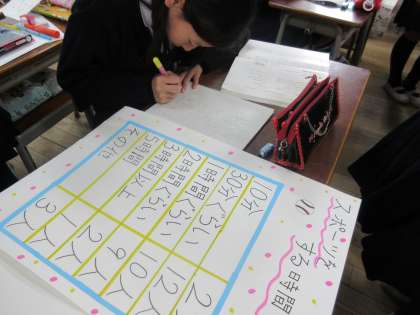 国語科で、自分たちでクラスの子にとりたいアンケートを考えて、集計をし、表やグラフにまとめる学習をしました。