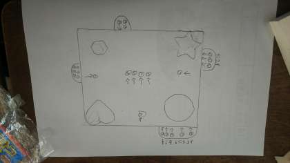 くぎを打つ前に、木のどこにくぎを打つのか、どんな模様やイラストを描くのかを考え、紙に設計図を描きました。それが完成してから、木の板に写していきました。