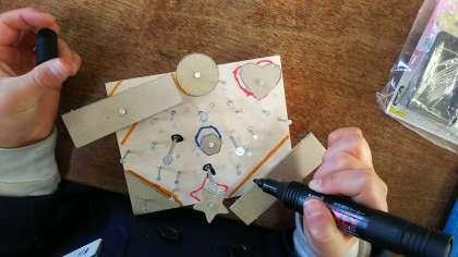 事前に考えたデザインに合わせて、くぎを打っていくと個性あふれる作品に仕上がっていました。