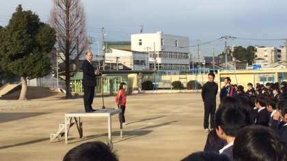 平野北中学校の、宮川校長先生が全校朝会に講話をしに来てくださいました!