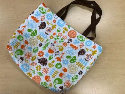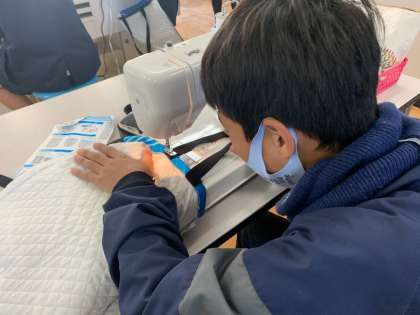 家庭科の学習では、中学校でも使える手さげバッグを作っています。