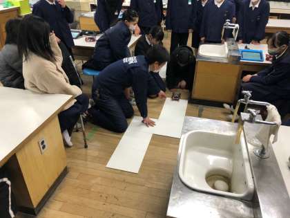 ロボットが画用紙で作った道を走れるように、プログラミングしました。