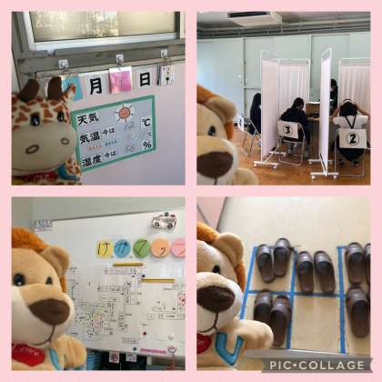 保健室でも健診が行われてるよ。みんなの健康を保つためにしています。今日も元気もりもりで過ごそうね。