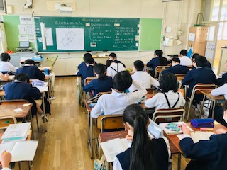 算数科では現在、対称な図形についての学習をしています。対称な図形には線対称と点対称があります。実際にそれぞれの対象な図形を三角定規などを使って作図することで、2つの特徴や違いについて考えることができました。集中して取り組む姿がたくさんみられました!テストに向けて頑張っています!