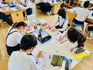 今日の理科の学習では、ものが燃えるときの空気中の気体の変化について実験をしました。ろうそくを燃やす前と燃やした後の瓶の中の酸素と二酸化炭素の割合を気体検知管を使って調べました。その後、燃やした後の瓶の気体と無色透明な石灰水を混ぜ合わせると濁った白色になるということも分かった。色が変わっていく様子に驚いた表情を浮かべる子どもがたくさん見られました!!