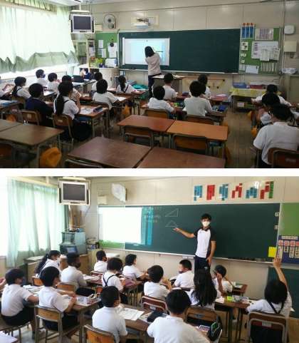 3年生の復習から始まり、「直角」の大きさや分度器の使い方をや学んでいます。子どもたちからは「できた!」や「わかりやすい!」といった声があがっていました。
