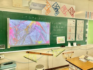 6年の図画工作科では、「ふいてふいてかこってかこって」というテーマで作品づくりをしています。