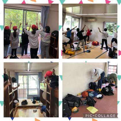 お部屋に入って、荷物の整理をしたら、山登りの準備。この後は避難訓練だよ。