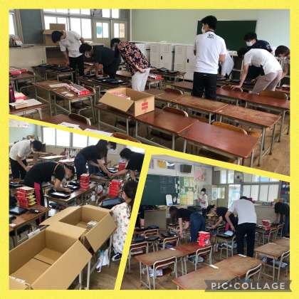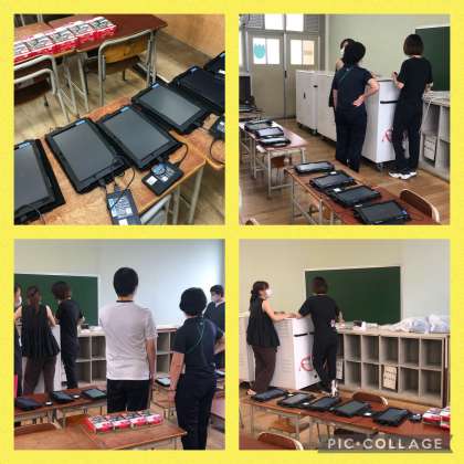 1年生も、タブレット端末を活用したオンライン学習の準備を進めています。