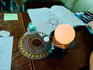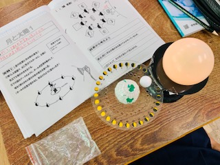 理科の学習では、月の位置と月の形の変化ついて学習しています。日によって月の形が違って見えるのはどうしてなのかを実験道具を使って確かめました!