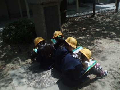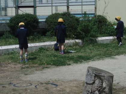 4年生になって初めての観察です。春の生き物はどこにあるかな?ところどころから「これ、たんぽぽや!」や「うわっ!ちょうちょうがおる!」などと声も聞かれました。みんないきいきした表情で観察していました。一年間同じ場所で観察するので、季節の変化も感じられることでしょう。