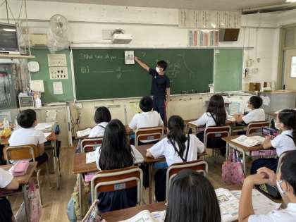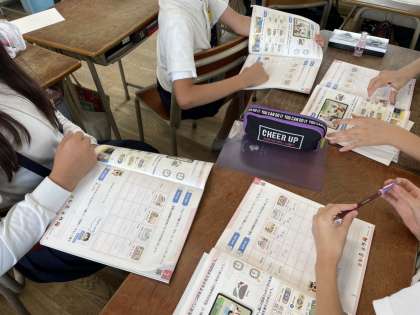 友だちに質問してみたり、自分の生活を答えたりしながら時間の伝え方を学習しています。