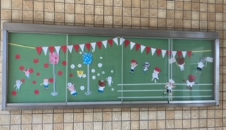 掲示委員会が作ったピロティの掲示物も、みんなの練習を見守ってくれていました。