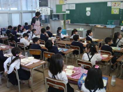 どのクラスの子どもも、しっかりと担任の話を聞き、自分たちでできる準備をし、おいしく給食を食べていました。中には、まだまだ自分の食べる量の見当がつかず、食べ残してしまう子もいますが、おいおい慣れてくることと思います。